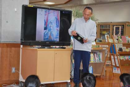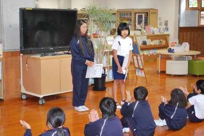 校長先生のお話です。3連休中、夏日が続きましたが今のこの時期、暦の上では「立冬」であることを子どもたちに伝えていました。校長先生のお話の後、科学研究作品展の表彰を行いました。