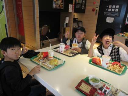 1・2年生は校外学習で、豊田市の中心地と鞍ヶ池公園に行きました。足助の町との違いや同じところを見つけながら、楽しそうに探検していました。昼食はファストフード店にて食事しました。初めての子もおり、楽しい時間になりました。鞍ヶ池公園では動物園や植物園に興味津々。素敵な1日になりました。