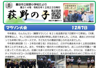 12月22日(金)学校だより「萩野の子」314号