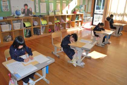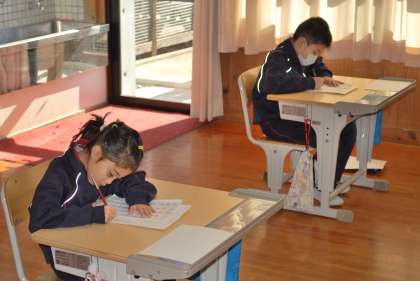 1,2年生の様子です。いい文字を書くために真剣です。