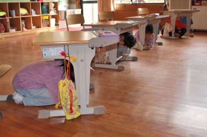 今回の避難訓練は、子どもたちには事前に訓練の日時を知らせずに実施しました。運動場や自分の教室で過ごしていた時に突然、放送が入ってびっくりしたと思いますが、先生たちの指示をよく聞いて訓練に参加できました。