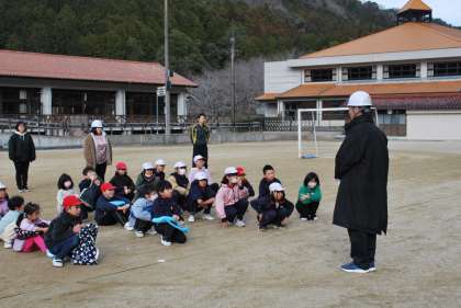 全員の避難が完了した後、校長先生から1月1日に起きた地震の様子を踏まえて全体指導をしていただきました。「慌てることなく、どこにいれば、また、どう行動したら自分の命を守れるか、よく考えて行動してください」という話を子どもたちは頷きながら聞いていました。