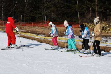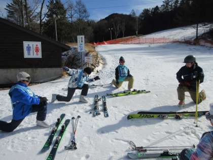 午前中はスキー板の装着やスキーブーツの吐き方、ストックの持ち方などを教えていただきました。