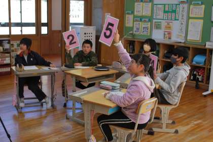 手品師の生き方についての意見交流をしました。大蔵小学校5,6年生の子たちとの意見交流を通して、誠実な生き方について考えを深めていました。
