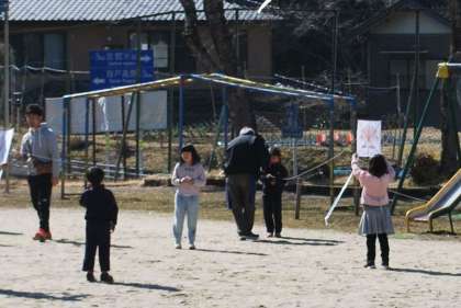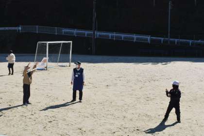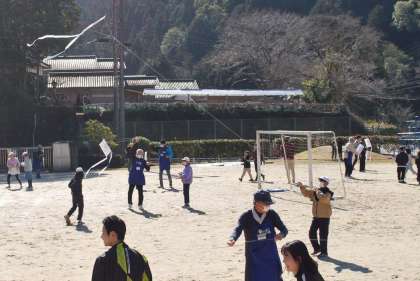 和凧を作り終えた後、運動場で練習用の和凧を使って凧あげの練習をしました。風がほとんど吹いておらず、凧あげにはあまりいい条件ではありませんでしたが、子どもたちは楽しそうに凧あげの練習をしていました。子どもたちは16日(金)に自分で作った和凧をあげる予定です。