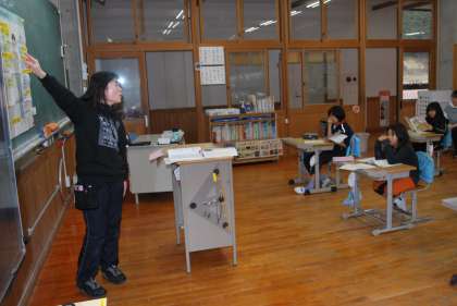 養護教諭による保健の授業です。子どもたちは興味深く話を聞き、「うちのお兄ちゃんも、ちょっと前に声が変わった!」と反応する子もいました。大人になったら、いろいろ体が変化することを学びました。