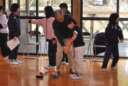 グランドゴルフと工芸クラブの活動についての発表を聞いた後、それぞれのクラブに分かれて体験会を行いました。