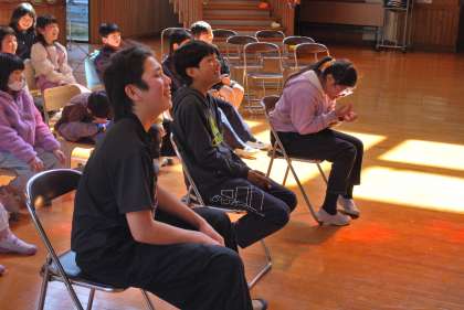 3〜5年生は、6年生の名前を用いた作文発表です。作文を通して6年生に感謝の気持ちを伝えることができました。作文の発表を聞いて、思わず涙ぐむ6年生もいたように感じました。