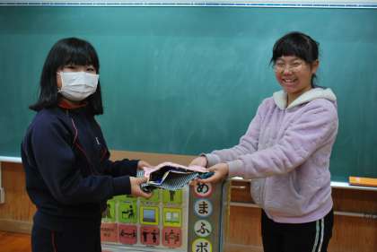 6年生が心を込めて作ったプロジェクターカバーが完成しました。6年生は各教室に出向いて配付しました。卒業記念の品として、大切に使わせていただきます。