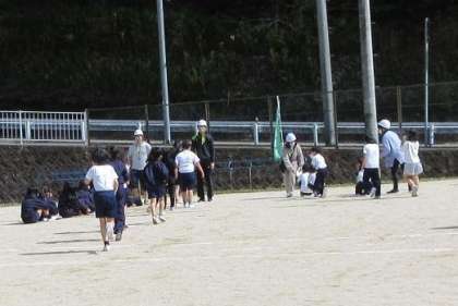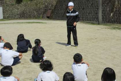 理科室からの出火を想定した避難訓練です。避難開始の放送を聞いて、無言で避難をすることができました。「家の中で火事が起きやすい場所がないかどうか、お家の人とぜひ話をしてください」と校長先生が話をしました。燃えやすいものが近くに置いていないか、お家でも確認しましょう。