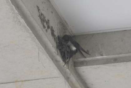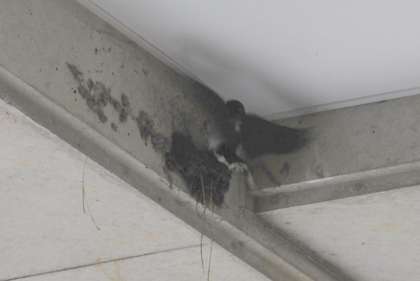 図工室横のピロティーでツバメが巣を作り始めました。2羽のツバメが力を合わせて作っていました。
