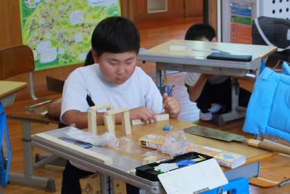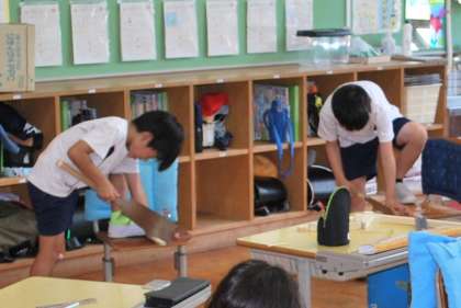 のこぎりを使って木材を切ることが楽しくて仕方がない様子でした。作業が終わった後、協力して教室内の清掃をしました。どの子も次の活動への取りかかりがとても早く一生懸命にやるので、教室がとてもきれいになりました。