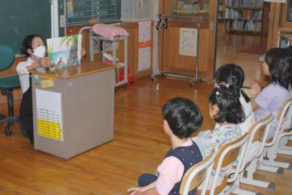 今年度3回目の読み聞かせです。子どもたちは、ボランティアの方たちの読み聞かせに夢中になって聞き入っていました。