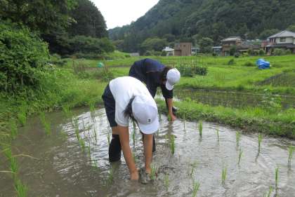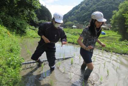 5,6年生が田んぼに生えた水草を取り除く作業をしました。この作業は稲を育てて、おいしいお米を収穫するためにも必要です。5,6年生は、そのことをよく知っているので一生懸命に作業をしていました。