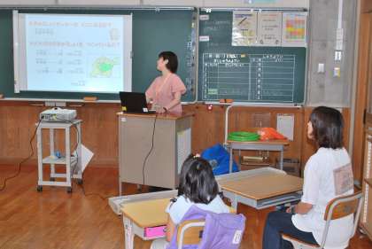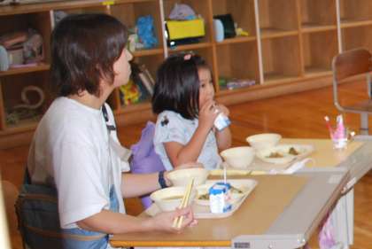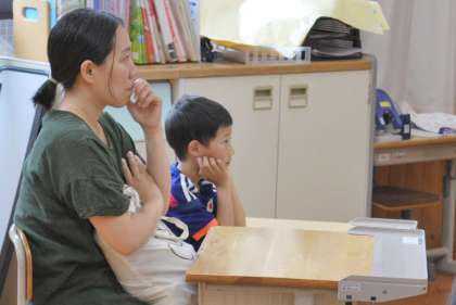 1年生保護者を対象に給食試食会を行いました。お子さんと一緒に給食を食べた後、栄養教諭の方からのお話を聞きました。
