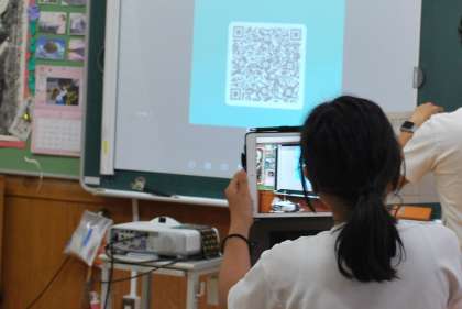 短歌の作り方を確認した後、「夏」をお題にした短歌を各校2班に分かれて作りました。作った短歌をオンラインで発表した後、QRコードを読み取り、一番気に入った短歌に投票しました。投票後の結果発表を一喜一憂しながら聞いていました。
