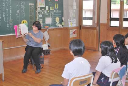 今年度4回目の読み聞かせです。1〜3年生の読み聞かせは、担当のボランティアの方がお休みになったので、担任の先生方が読み聞かせをしました。