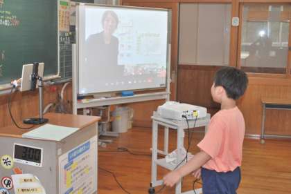 「How many〜?」を使った質問やその回答の仕方をオンラインで学習しました。先生の人数や図書室の本の数などを答える質問に、声を合わせて元気よく英語で発表しました。