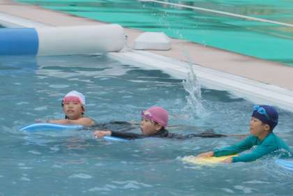 「25m泳げるようにする」「蹴伸びしてバタ足で泳げるようになる」「水に顔がつけれるようにする」等、子どもたちの目標はそれぞれ違いますが、目標が達成できるように、ご家庭でも応援をお願いします。