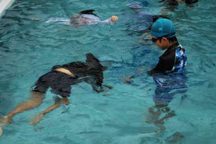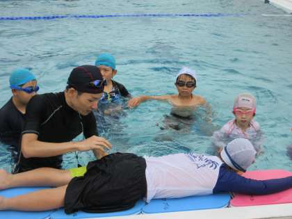 3回目の水泳運動で蹴伸びやバタ足、ビート板を使ったクロールの練習をしました。体を真っ直ぐ伸ばすことを意識して、少しでも遠くまで泳げるように頑張っていました。