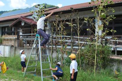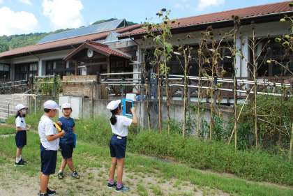 3,4年の子どもたちが、花が咲いた後の植物を観察しました。夏休み前から育てたホウセンカやヒマワリの変化を観察しながら、植物の成長過程を学んでいました。