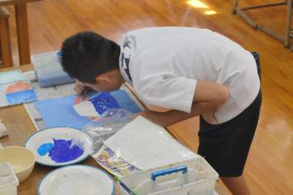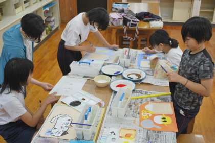子どもたちが作っているこの作品は、足助地区ふれあいまつり子ども作品展に展示する予定です。