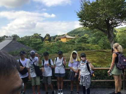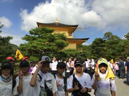 金閣は舎利殿であり、住居ではないそうです。お天気に恵まれ金箔がとてもまぶしいです。