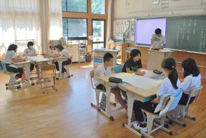 学校生活の中から課題を見出し、各グループで司会の進行に沿って話し合っていました。授業では、学校生活を「もう一つレベルアップする」には、どんな課題をクリアする必要があるかを考え、話し合いを通して解決策を考えていました。