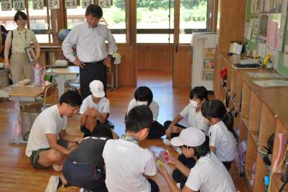 豊田市教育委員会の教育長が来校しました。授業や休み時間の様子の他に保健室活動の様子も見ていただきました。