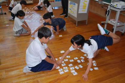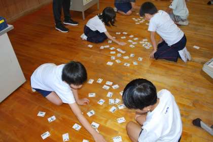 漢字部首かるたを使って、漢字の成り立ちやその意味について学習しました。成り立ちが分かれば、楽しく漢字が覚えられそうですね。