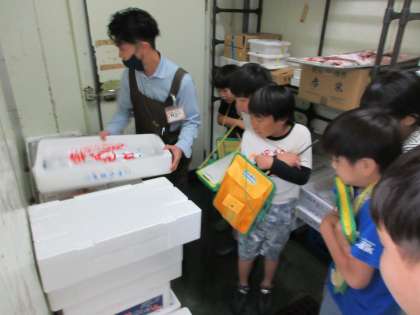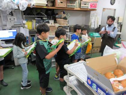 社会科の学習で足助のスーパーマーケットへ校外学習に行きました。社長さんにバックヤードを中心に店内を案内していただきました。お客さんが買い物しやすいように、様々な工夫がされていることを学ぶことができました。