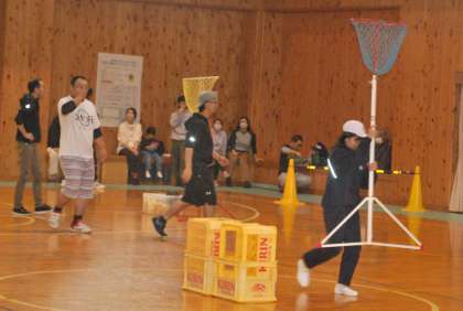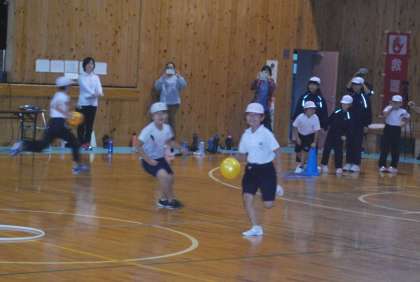 宝物のボールを奪い取るためアリーナ内を走り回り、子どもたちは真剣です。