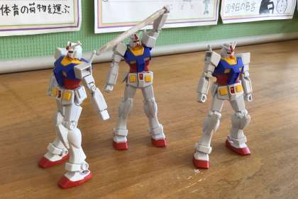 子どもたちは配信される動画を教室で視聴しながら、プラモデルを作る工場の仕事を学びました。動画を視聴した後、有名なキャラクターのプラモデル作りを行いました。プラモデル作りを通して、ものをつくる仕事の楽しさを感じ取っていました。
