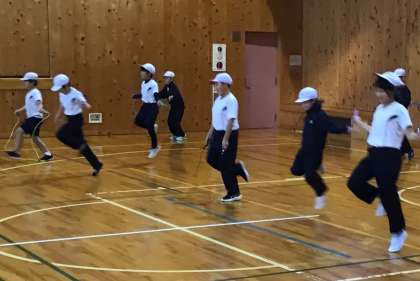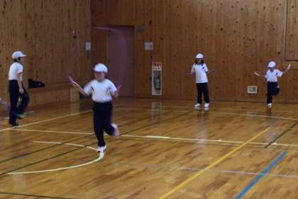 高学年の子たちは2本の長縄を使って跳ぶ「ダブルタッチ」にも挑戦しました。「今までできなかった なわとびのいろいろな跳び方ができるようになった」という子どもたちの感想をたくさん聞くことができました。