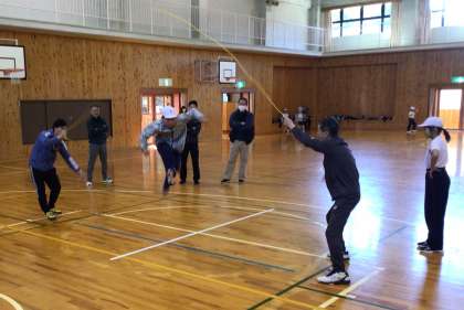 中京大学より野田智洋教授を講師に招き、全校児童を対象に「二重跳び」「スキップ跳び」のコツを分かりやすく教えていただきました。