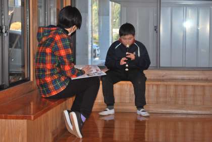 一人一人しっかり演奏できるか、先生に聞いてもらっていました。子どもたちは順番を待っている間、ドキドキしながら練習をしていました。