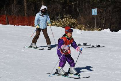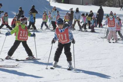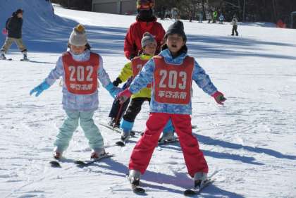 子どもたちはインストラクターの指導のもと、午前の部およそ70分ほど、スキーの練習をしました。ゲレンデで楽しそうに子どもたちがスキー練習に励んでいました。