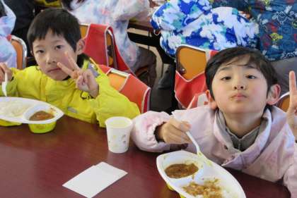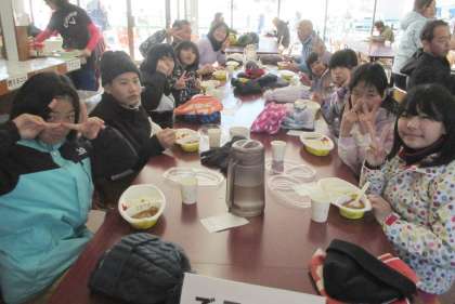 昼食はカレーライスです。エネルギーを補給して午後の部を待ちます。