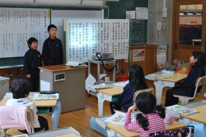 元気な歌声に誘われて、1,2年生の子どもたちの歌声を聴きに行きました。二人ずつが歌うテストの歌声は、緊張しながらも一人一人の頑張りがよく見えました。