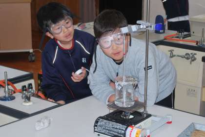 グループに分かれ、ストップウォッチを片手に時間を伝える子、温度がどれくらいになったのかを記録する子、役割を決めて協力し実験を行っていました。