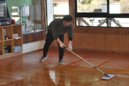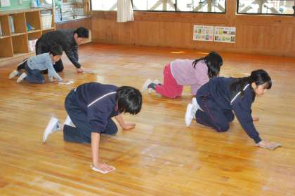 5限終了後、大掃除でワックスがけをしました。ワックスがけをする前に子どもたちは先生たちと一緒に教室の床を水ぶきしました。たくさん勉強したり、遊んだりした教室をいつもより時間をかけて丁寧に掃除をしました。