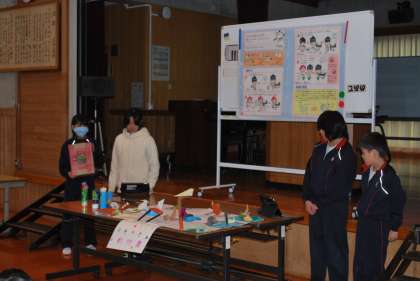 活動している様子の写真を見せたり、クイズ形式でゲームのルールを紹介したり、つくったものを見せながら工夫した点などを聞いている人たちに伝えたりしていました。