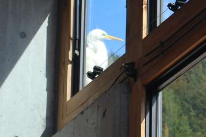 2限の卒業式練習が始まる頃に大きな鳥が本校にやって来て羽休めをしていました。(子どもたちは「白鷺だ!」と口々に言っていましたが…)