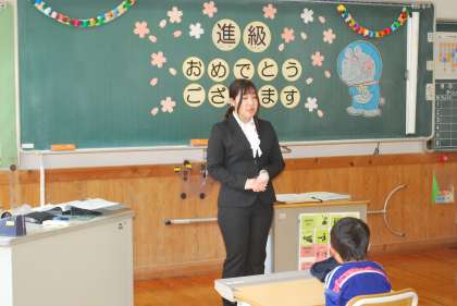 学級開きの様子です。子どもたちは新しい担任の先生のお話をにこやかな表情で聞いていました。いい出会いができた様子です。