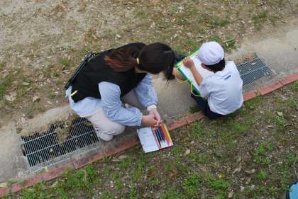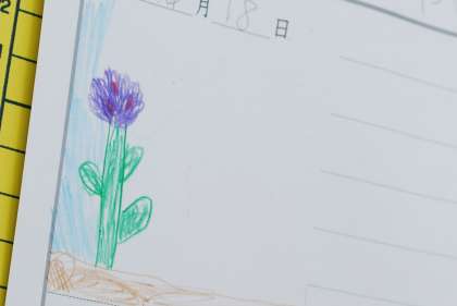 運動場の片隅に咲いている小さな花を見付けて、その花の形や色について気付いたことをプリントに書きました。何気なく過ごしていると気が付かないような春の植物を観察することで、子どもたちは自然との触れ合いを楽しんでいました。