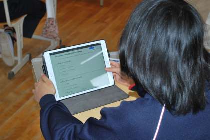 数年前は、回答用紙に記入して提出していましたが、今では二次元コードを読み込んで学習用タブレットで回答するようになりました。子どもたちが手際よく学習用タブレットを使用する様子を見て、教師もタブレット端末を効果的に活用するためのスキルを高めなければと考えます。