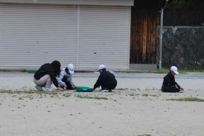 4月28日(月)運動場の草取り作業