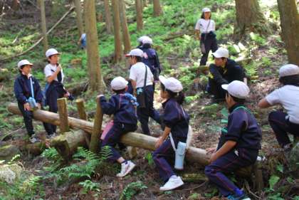 登山道の途中にある「山の駅」で休憩をしました。子どもたちは仲良くシーソーで遊んだり、「早く行こうよ」と登山道で待機したりして元気です。先生たちは呼吸を整えるのに必死です。