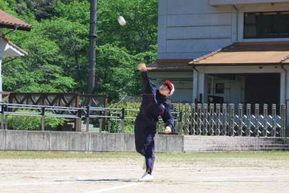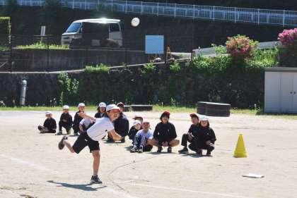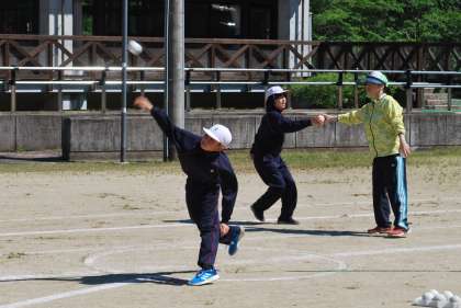 50m走の後にボール投げをしました。ボールを投げるフォームが格好いいですね。