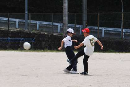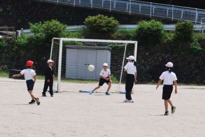 蒸し暑さを感じましたが、子どもたちは外に出て、サッカーや鉄棒で遊んで元気です。こうした外遊びを続けるうちに体が徐々に暑さに慣れ、暑さに対する抵抗力が高まります。
